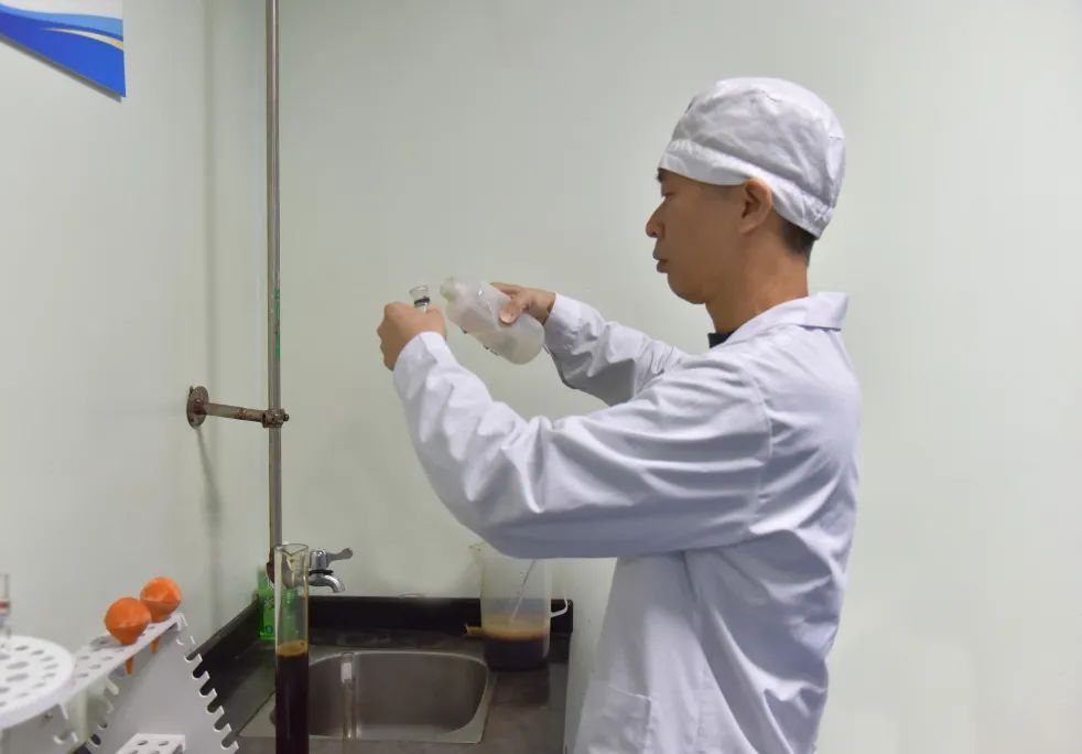 每天的原輔料復(fù)核、配料定容、密度檢測(cè)、PH值檢驗(yàn)、性狀分析、產(chǎn)品外觀鑒別等,一批次下來(lái)多達(dá)60多項(xiàng)的指標(biāo)檢驗(yàn),形成生產(chǎn)記錄,出具檢驗(yàn)報(bào)告……這些在外人看來(lái)瑣碎而平凡的工作,卻是阿國(guó)的常態(tài),更是公司執(zhí)行GMP管理的必須。