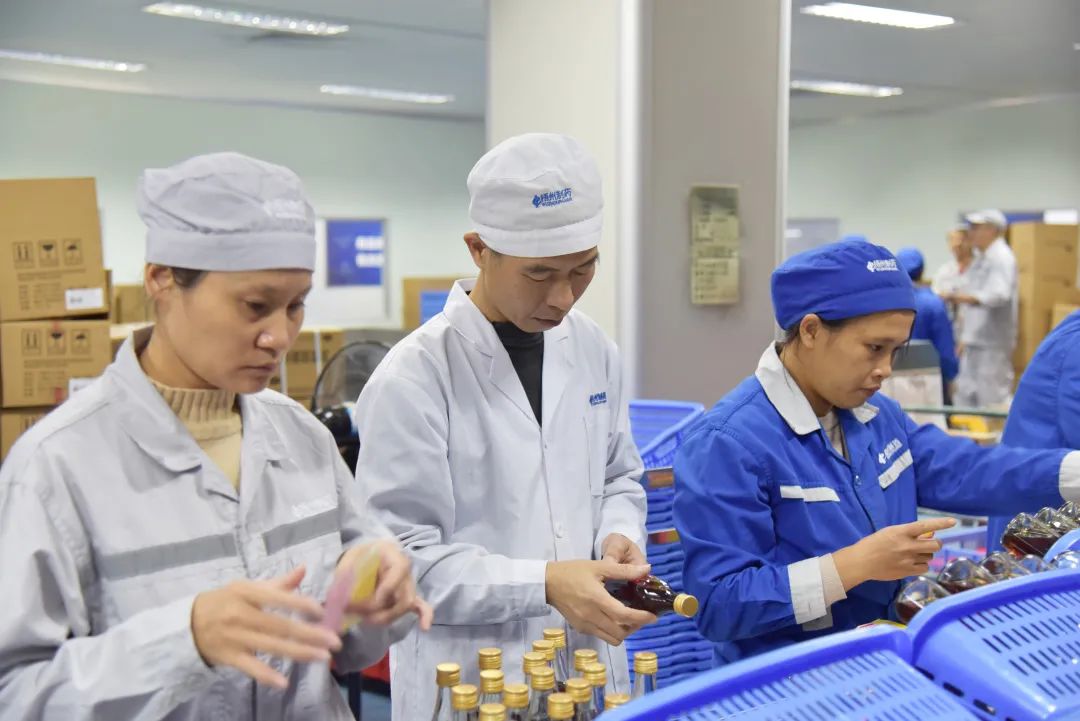 7:50配料開(kāi)始,8:50灌裝間機(jī)器聲響起,9:00洗瓶間人員已經(jīng)忙碌而有條不紊工作起來(lái),待前端各工序正常運(yùn)行后,他又往包裝區(qū)域巡場(chǎng),“阿嬌,這張產(chǎn)品合格證印得不太清楚,換一張吧。”“兩個(gè)批號(hào)不一樣的,阿炳你搬箱時(shí)注意一下?!薄靶氯顺鮼?lái)乍到,對(duì)于包裝不熟手很正常,產(chǎn)品需要多抽檢,新人亦要多提醒?!倍嗄甑墓ぷ鹘?jīng)驗(yàn),讓他在巡檢中準(zhǔn)確快速地根據(jù)當(dāng)前狀態(tài)捕捉到質(zhì)量控制關(guān)鍵點(diǎn)。