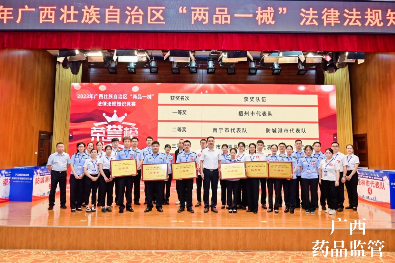 7月13日,由梧州制藥員工代表——質(zhì)量控制部呂金慧、質(zhì)量保證部李佳霖與梧州市場(chǎng)監(jiān)督管理局監(jiān)管人員組成的梧州市代表隊(duì)參加廣西壯族自治區(qū)“兩品一械”法律法規(guī)知識(shí)競(jìng)賽,憑借過硬的專業(yè)知識(shí)、迅速的反應(yīng)能力、高效的團(tuán)隊(duì)配合力,與全區(qū)14個(gè)市代表隊(duì)展開激烈角逐,榮獲得2023年廣西壯族自治區(qū)“兩品一械”法律法規(guī)知識(shí)競(jìng)賽一等獎(jiǎng)。