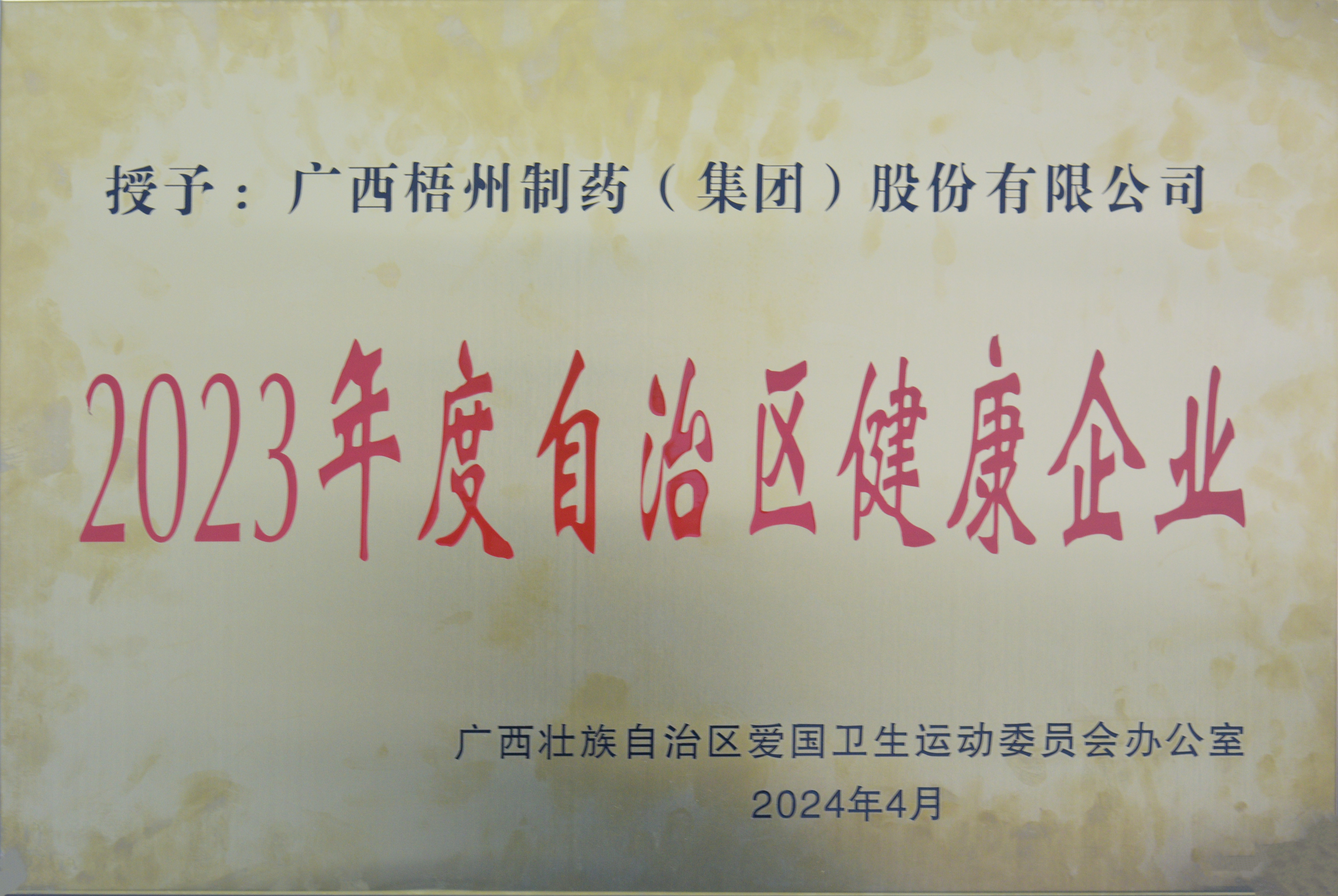 廣西梧州制藥(集團(tuán))股份有限公司榮獲2023年度自治區(qū)健康企業(yè)