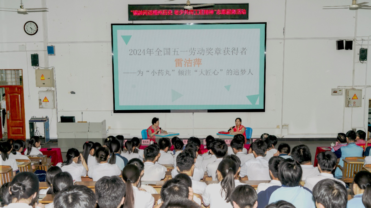 近日,在梧州市第一中學(xué),一場別開生面的“巾幗勞模進(jìn)校園”開講了,由中共梧州市委員會老干部局主辦的“銀齡同話梧州歷史 老少共傳工匠精神”志愿服務(wù)活動,梧州制藥固體車間工藝與技術(shù)主管雷潔萍受邀作為宣講代表出席活動。