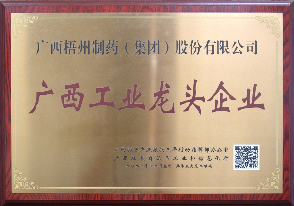 廣西梧州制藥(集團)股份有限公司獲評廣西工業(yè)龍頭企業(yè)