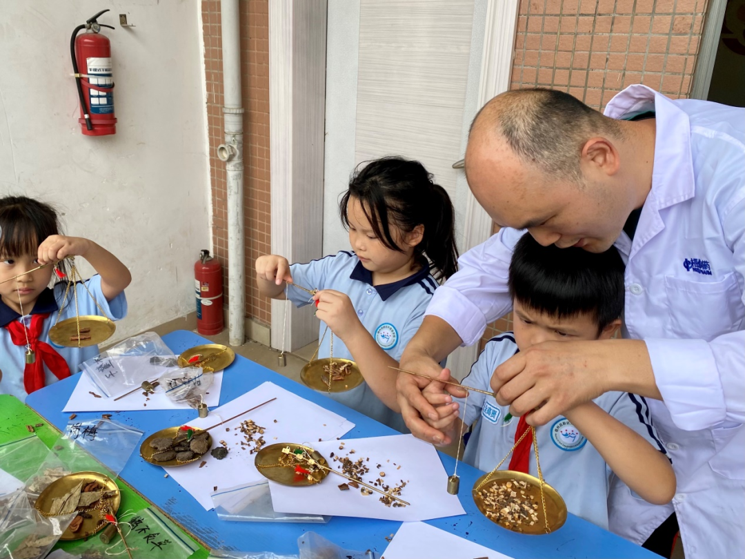 “原來中藥這么有趣!”在中藥辨識(shí)區(qū),孩子們圍著展臺(tái)興奮不已,通過觸摸、嗅聞藥材,辨識(shí)藥材的質(zhì)地與氣味,互動(dòng)式的教學(xué)方式讓傳統(tǒng)中藥知識(shí)變得生動(dòng)有趣。“老師,這個(gè)銅秤好精致!”戥秤體驗(yàn)臺(tái)前更是熱鬧非凡,一桿桿古樸的戥秤吸引了孩子們的目光,專業(yè)藥師正手把手地教孩子們“一錢一兩”的精準(zhǔn)稱量,孩子們?nèi)褙炞⒌夭僮?,感受著中醫(yī)藥文化的嚴(yán)謹(jǐn)與精妙。